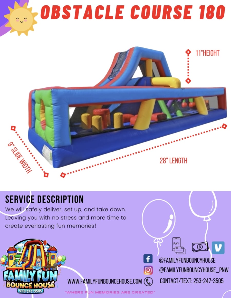 Looking for the perfect entertainment for your next event? Look no further than our vibrant Obstacle Course 180! 🎉